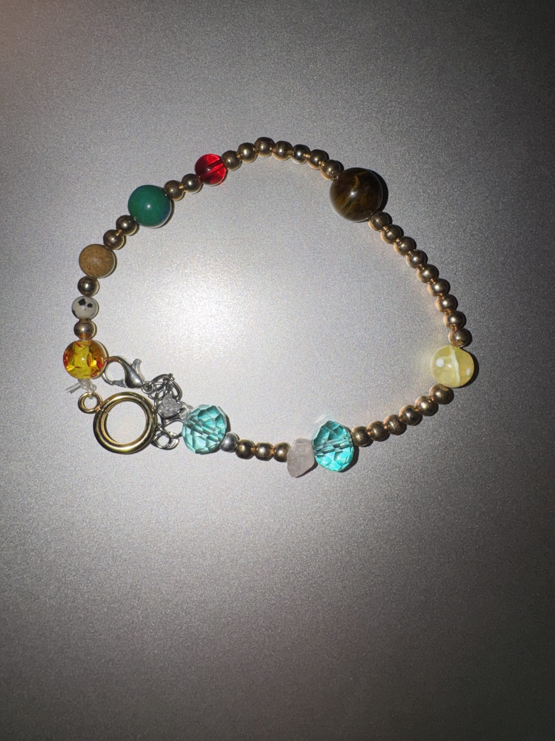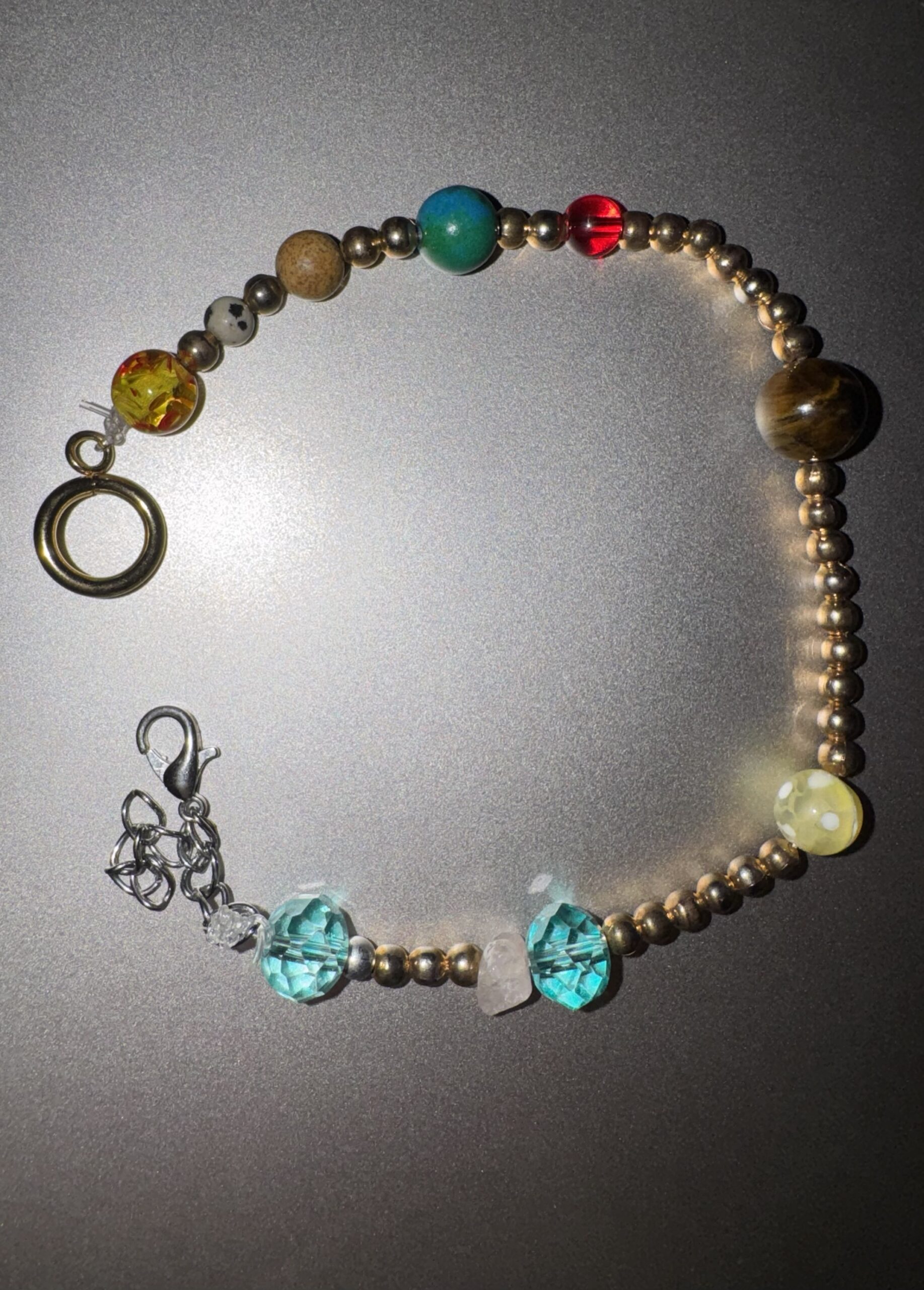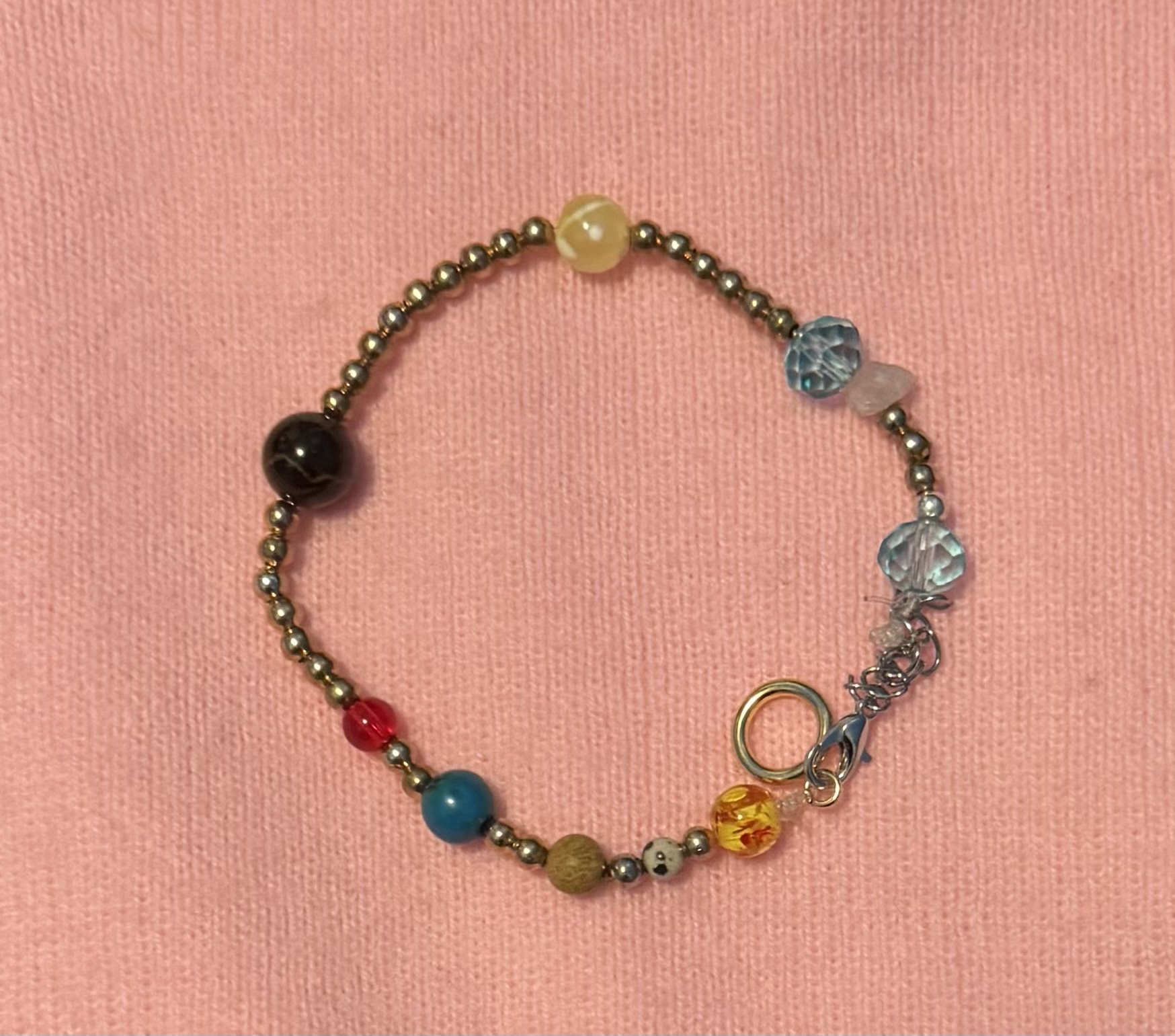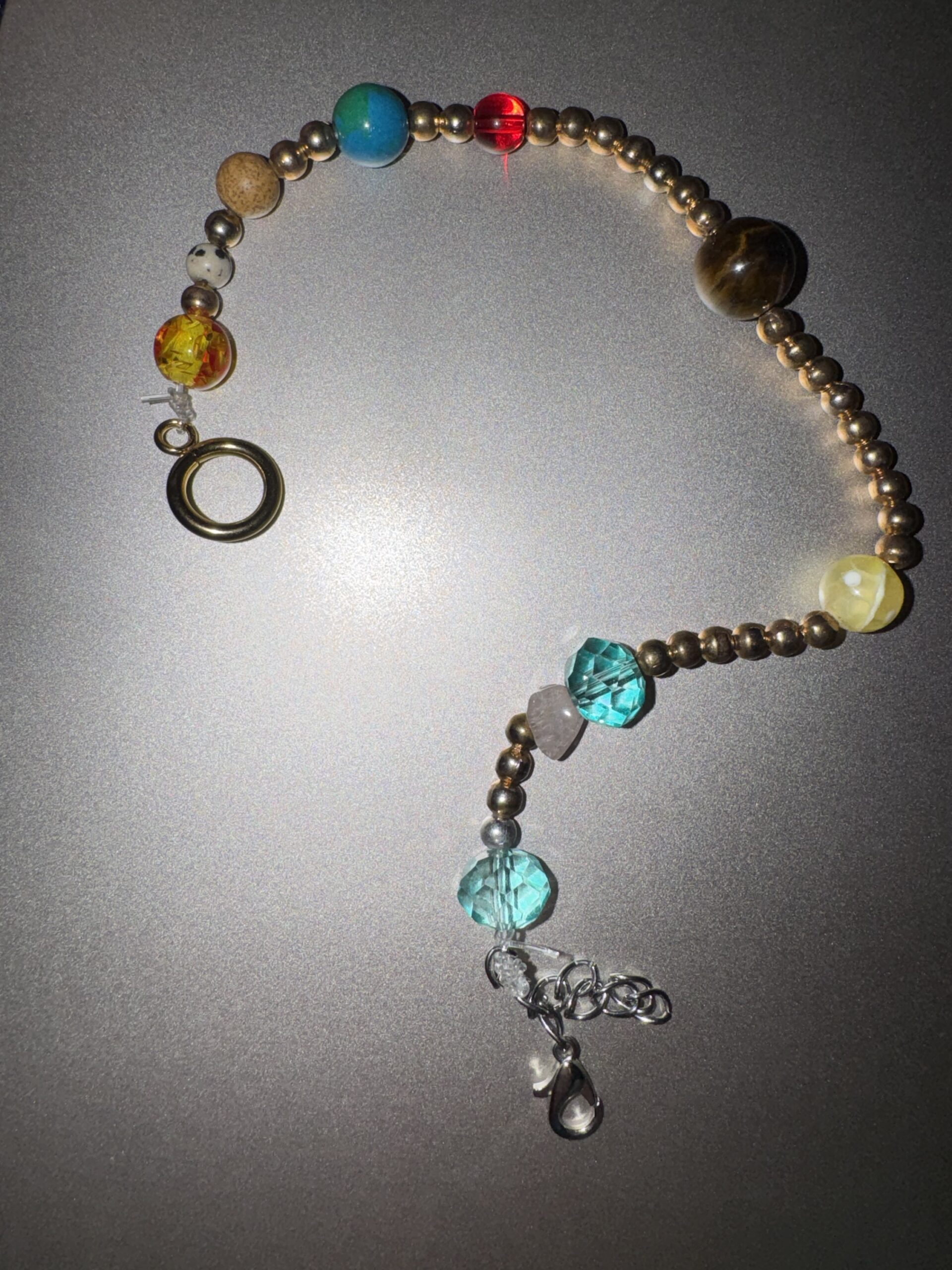 This handmade solar system bracelet represents the planets with carefully selected beads, each symbolizing a planet in our solar system. Designed with metallic accents and finished with a secure clasp, it combines meaning with style. A unique piece perfect for space lovers, everyday wear, or as a thoughtful handmade gift. Each bracelet is one of a kind.